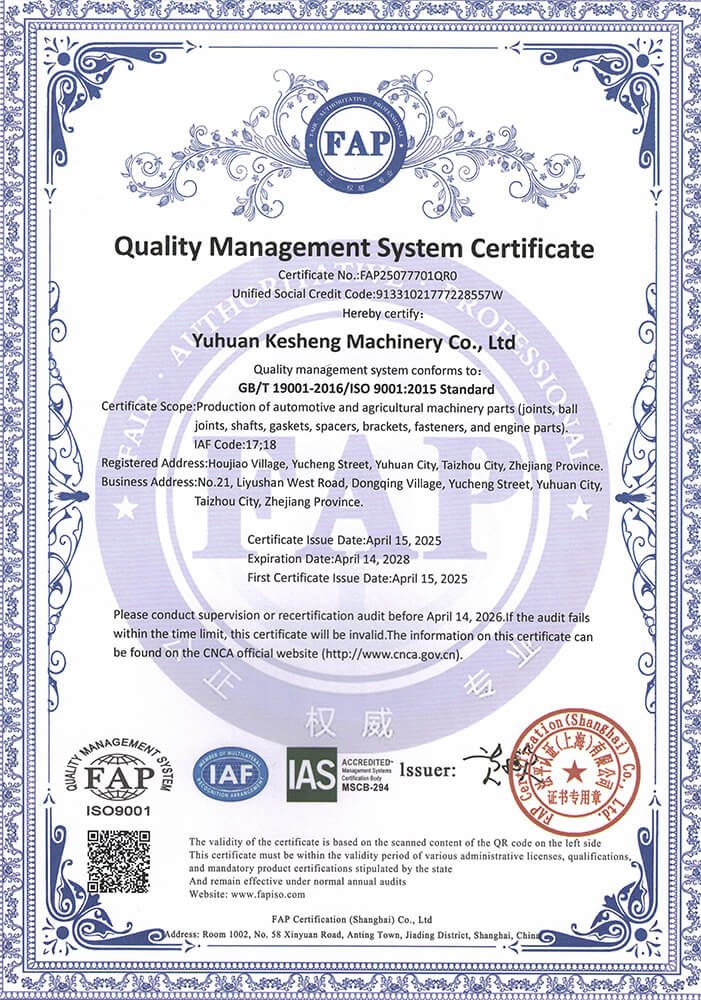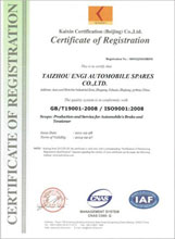 2007年,公司就通过了ISO9001 : 2008质量管理体系认证,公司不断的改革创新,提高产品质量和服务水平,2014年,公司又通过ISO/TS16949:2009质量管理体系认证,企业发展又上了一个新台阶,内部质量管理渐趋完善。真挚的希望国内外同行与我们携手共创汽车行业的辉煌。